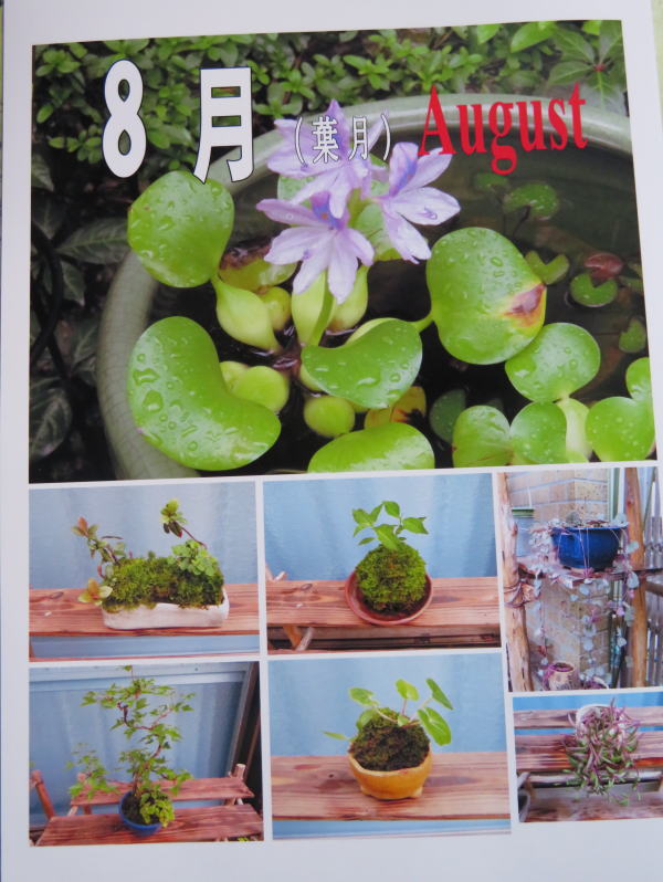 張って鉢を置き、乾燥を防ぎます。8月は花類がないので、苔玉やミニ盆栽の紹介をします。水やり